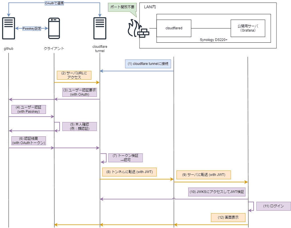 GitHubはPasskey認証に対応しているため、CloudflareとGitHubを連携するとCloudflare Tunnelで公開しているローカルのサーバにPasskeyでログインができるようになります(無料で!)。ということでやってみます。
